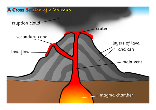 KS2 Parts of a Volcano Labelling Activity | Twinkl Originals Teach children about the different parts of a volcano with this differentiated activity which involves labelling the key parts of a volcano. Featuring a cross-section illustration, children find the correct place for key terms such as crater, magma, ash cloud and main vent.