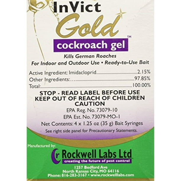 InVict Gold Syringe Now Includes Built-in Application Tip InVict Gold Cockroach Gel is formulated with a unique blend of multiple food attractants and 2.15 percent imidacloprid. Its palatability allows for effective control of "normal" and "bait-adverse" roaches, Rockwell reports. The company recommends using the product in rotation with other roach baits like InVict AB Gel Bait.