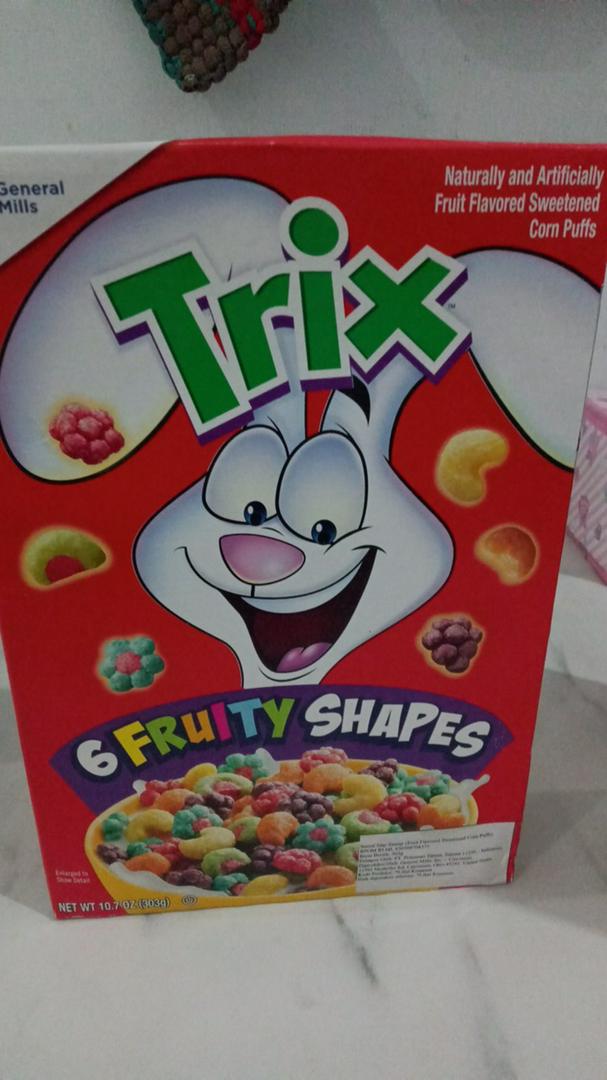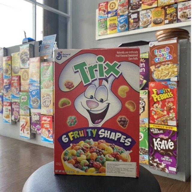 Trix - Brands - Food we make - General Mills Start the day with fun and with the fruity flavors of Trix. Six flavors of crispy puffs — raspberry red, lemony lemon, orangey orange, wildberry blue, grapity purple, and watermelon — are fortified with 12 vitamins and minerals, and 28 grams of whole grain per serving. History Celebrating 60 years of the Trix rabbit