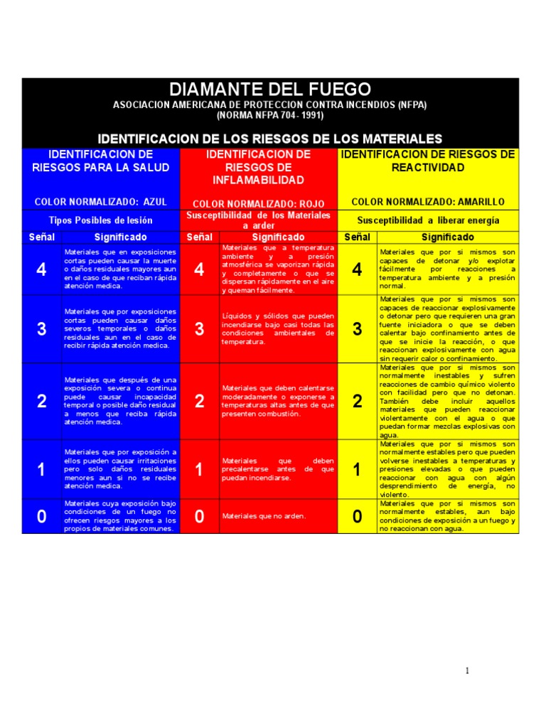DOT Hazardous Material Classes and NFPA 704 Colors NFPA 704 diamond has four colors in the placard. What are they and where are they placed? Red, Blue, Yellow, White. Red at top of diamond, Blue on left, Yellow on right, White at bottom. NFPA 704 uses a number scale from ___ to ___, with ___ being the least dangerous and ___ being the most dangerous. 0 to 4, with 0 being the least dangerous and ... nfpa 704 diamond rating system - Sonoma County, California National Fire Protection Association (NFPA)704,49 . California Fire Code (CFC) 2703.5, 407.3. For Use By: Permit Applicants and Staff . ... The placard warning system numbers for each hazard category are defined in NFPA-704. A ... background color. The numbers are to be five inches (5") in height with a three-quarter inch PDF NFPA 704 Warning Placard Requirements National Fire Protection Association (NFPA) 704. 2 For more information, see ES&H Manual, Chapter 37, "Emergency Management." Hazard Categories The diamond-shaped placards use these four color-coded categories to give at a glance a general idea of the hazards present: • Health: blue, at the left. Injury hazard from burning materials