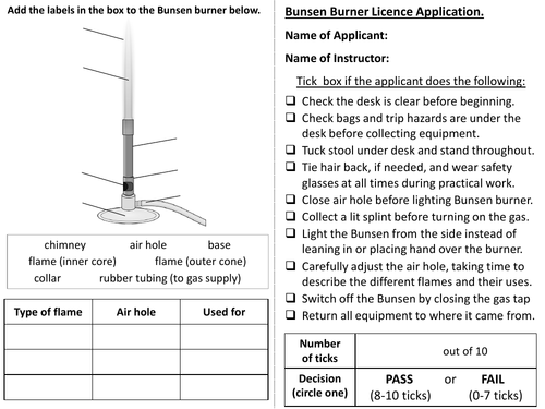Label the parts of the bunsen burner. US, an Antylia Scientific company - Lab equipment ... Cole-Parmer, an Antylia Scientific company, provides the widest range of lab equipment and supplies for pharmaceutical, biopharma, healthcare, and environmental. › bitesize › topicsKS3 Science - Working Scientifically - Drawing scientific ... Using a Bunsen burner to evaporate - to turn a liquid into a gas - some water during an experiment is another practical technique that is often used. 3 of 6 previous › Quadrant-Streak-for-IsolationHow to Quadrant Streak for Isolation: 9 Steps (with Pictures) Jul 24, 2022 · Label your new plate. The label should be written on the bottom dish, which is the smaller piece that contains the agar. It should include your name, the date, and the sample source. The label should be near the edge so as to not obscure any growth in the middle. › top-30-most-common-lab-equipmentTop 30 Most Common Lab Equipment Names, Pictures ... - Tekrati Jan 17, 2022 · Bunsen burners; A Bunsen burner is a gas burner commonly used as a heat source in laboratory experiments. It produces a single open gas flame used for heating, sterilization, and combustion. The gas can be natural gas which is mainly methane, or a liquefied petroleum gas, such as propane, butane, or a mixture.