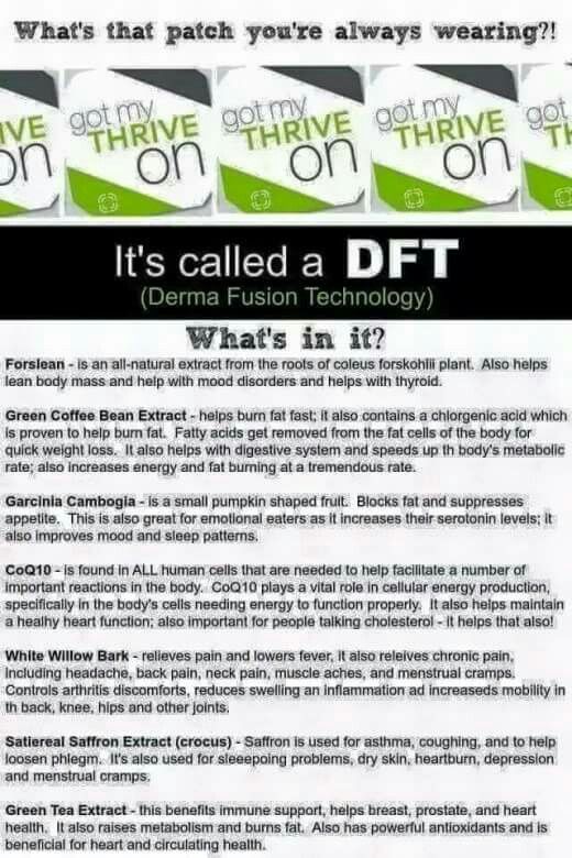 DFT from Le-Vel Thrive: Patch or Not? | SHL The answer is simple: Thrive DFT is a different technology. Other types of patches - like the ones that people use to counter nicotine cravings or keep from getting seasick - have been around for more than 40 years. Thrive DFT, on the other hand, is something new. Don't Call it the "Thrive Patch" — DFT by Le-Vel Explained Thrive DFT uses a proprietary formula made from aloe vera, CoQ10, ForsLean, garcinia cambogia, green coffee bean extract, white willow bark, and other natural ingredients. In other words, it's giving you the right amounts of the right nutrients, and ensuring that they're available for your body to use right when it needs them. Difference Thrive Patches In Search: Difference In Thrive Patches. Symptoms like nausea and vomiting, peripheral neuropathy and dry mouth are common side effects of certain cancer treatments, and may be treated with supportive care therapies, like nutritional support, oncology rehabilitation and behavioral health Apply patch daily to an area with little or no hair, such as the shoulder, back, or hip It's Saturday, the ... DFT Black Label | THRIVE by Le-Vel BLACK LABEL / WHITE LABEL is an evolutionary step forward in Derma Fusion Technology, and it incorporates an entirely different formula than standard DFT.