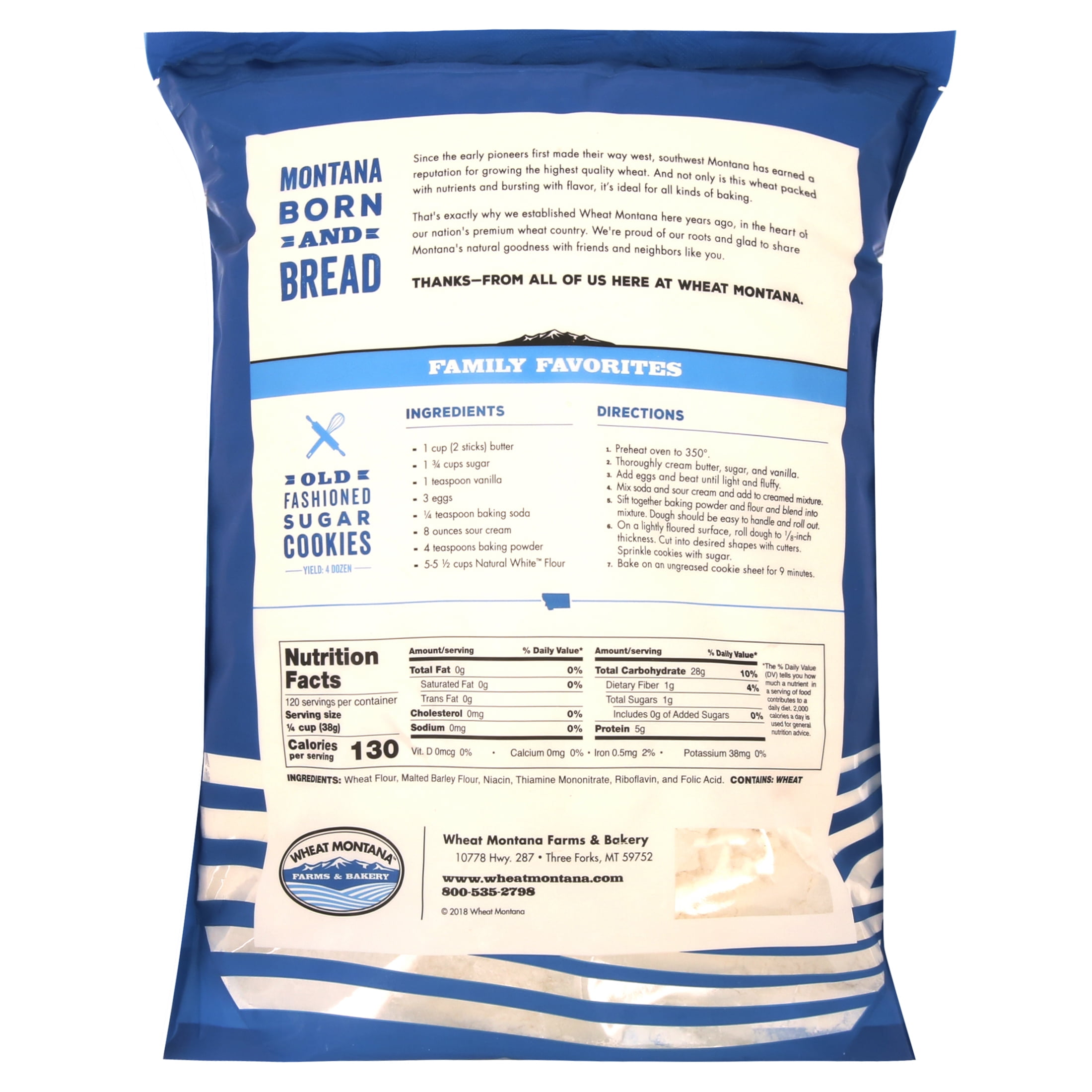 Great Value All-Purpose Flour, 5LB Bag - Walmart.com Nutrition facts. Refer to the product label for full dietary information, which may be available as an alternative product image. 75 Servings Per Container. Serving Size 1/4 cup (30g) ... Our All-Purpose Bleached Flour makes sure that your next baked good will rise to the occasion. This carefully milled blend helps achieve great volume and ...