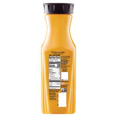 Simply Orange Orange Juice: calories, nutrition analysis & more ... Potassium 450 mg 10% Total Carbohydrate 26 g 11% Dietary Fiber 0 g 0% Sugars 23 g 32% Added Sugars 0 g 0% Protein 2 g 4% Vitamin A 0 mcg 0% Vitamin C 60 mg 80% Calcium 350 mg 35% Iron 0 mg 0% Vitamin D 2.5 mcg 12% Ingredients Contains orange juice, less than 1% of: calcium phosphate and calcium lactate (calcium sources), vitamin d3. 1 Comments