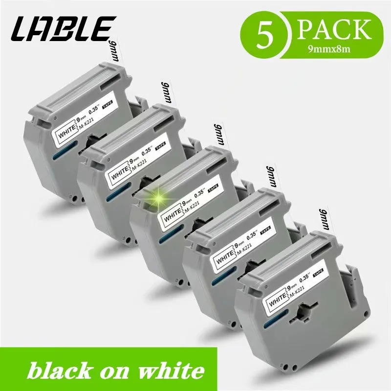 5Packs Multicolor MK221 MK121 MK421 MK521 MK621 MK721 Compatible For Brother P-Touch printer MK 221 M-K221 Black On White 9mm*8m Label Tape for PT-65 ...