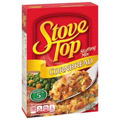 Calories in Kraft Stove Top Cornbread Stuffing Mix and Nutrition Facts Nutrition summary: There are 150 calories in 1/2 cup prepared (28 g) of Kraft Stove Top Cornbread Stuffing Mix. Calorie breakdown: 9% fat, 80% carbs, 11% protein.