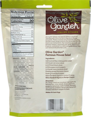 Olive garden dressing nutrition label. Olive Garden Italian Dressing, Light | Publix Super Markets 30 calories per serving. Light Italian dressing contains 30 calories and 2 g fat per serving. 70% less fat and 55% fewer calories than regular Italian dressing. nutrition information - Olive Garden Olive Garden attempts to provide nutrition information regarding its menu items that is as complete as possible. ... Salad with Signature Italian Dressing. Nutrition Facts for Olive Garden Signature Italian Salad Dressing ... Olive Garden. Signature Italian Salad Dressing. Nutrition Facts. Serving Size. tbsp. 2 tbsp = 30g. Amount Per Serving. 80. Calories. % Daily Value*. Calories in Olive Garden Italian Dressing - CalorieKing Nutrition Facts ; 8 g · 1.5 g · 0 g · 5 mg · 520 mg ; 12% · 8% · 2% · 22%.