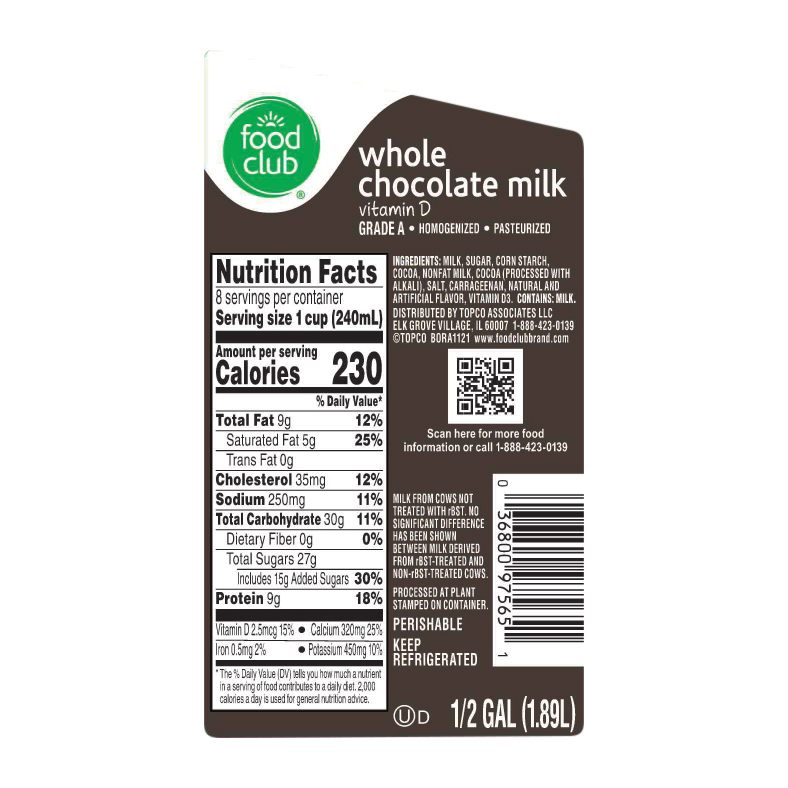 LACTAID® Chocolate Milk | LACTAID® This chocolate milk, has the right amount of chocolate flavor ~ not overpowering at all. It contains calcium, protein, potassium, vitamin A and D. This drink is very tasty and does not cause me any bloating or discomfort afterwards 🎉. The only CON is that it tends to be expensive. Originally posted on influenster.com ★★★★★ ★★★★★ evguenia Reduced Sugar* Low Fat Chocolate Milk Jug | McDonald's There are 130 calories in a Reduced Sugar Low Fat Chocolate Milk Jug from McDonald's. Order one from our full menu in the app using contactless Mobile Order & Pay ^ with Curbside pickup. *25% less sugar than leading Quick Service Restaurants' low fat chocolate milk. 14g of sugar vs. avg. 23g at leading Quick Service Restaurants Chocolate Milk Nutrition Information | livestrong The USDA notes that, apart from calcium, 1 cup of chocolate milk has 149 calories and offers 7.99 grams of protein, 2.5 grams of fat, 24 grams of carbs (of which 22.01 grams are from sugar), 420 milligrams of potassium, 130 milligrams of sodium, 499 milligrams of vitamin A and 101 milligrams of vitamin D. The Calorie Content Of School Chocolate Milk | Nunu Chocolates A school chocolate milk typically contains between 130 and 150 calories. The number of calories in a school chocolate milk can vary depending on the brand, the size of the milk, and whether or not it is made with whole milk or skim milk. The calories in a single serving of Lowfat Chocolate Milk are 158….
