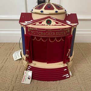 Mr. Christmas Nutcracker Suite Musicbox - amazon.com Product Description Brand New Mr. Christmas Nutcracker Suite The Nutcracker Suite by Mr. Christmas brings Tchaikovsky's classical ballet to center-stage inside your home. Inside a dark wooden theater with bronze accents, a velvet curtain opens and closes between different scenes as Tchaikovsky's musical compositions are played.