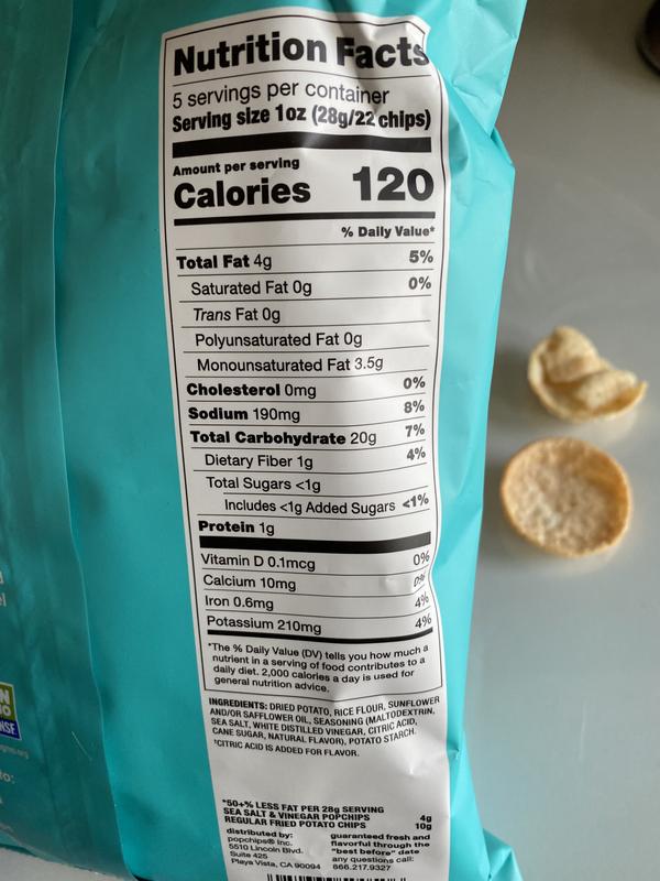 Salt & Vinegar Pringles® Potato Crisps | Pringles® Nutrition Ingredients INGREDIENTS: DRIED POTATOES, VEGETABLE OIL (CORN, COTTONSEED, HIGH OLEIC SOYBEAN AND/OR SUNFLOWER OIL), DEGERMINATED YELLOW CORN FLOUR, CORNSTARCH, RICE FLOUR, MALTODEXTRIN, MONO- AND DIGLYCERIDES, LACTOSE. CONTAINS 2% OR LESS OF SALT, SODIUM DIACETATE, VINEGAR, DEXTROSE, MALIC ACID, TURMERIC COLOR, WHEAT STARCH. Best Salt and Vinegar Chips: Tasted and Reviewed. The best salt and vinegar chips come in many different forms, whether you seek the classic potato chip experience or are open to discovering new snack territory! ... Scannable QR code on the label gives you instant info access. Comes with a fresh-or-your-money-back guarantee. ... PopChips Original Sea Salt & Vinegar chips have just 130 calories ... Amazon.com: Salt And Vinegar Protein Chips Proti Fit - Sea Salt & Vinegar Proti Protein Chips, 15g Protein, Low Calorie, Low Fat, Low Carb, High Fiber, Gluten Free, Healthy Snack Chips, 7 Single Serving Bags (Sea Salt & Vinegar) 4.3 (25) $2099 ($3.00/Count) FREE delivery Feb 28 - Mar 1. Or fastest delivery Feb 27 - 28.