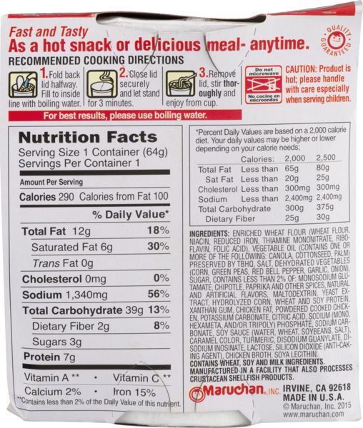 Romania Itinerary | Eurail.com The city of Brasov is surrounded by the Carpathian Mountains, making it a popular winter sports destination. Main sights include the Black Church, named so after being partially destroyed in a great fire, and Rope Street, the narrowest street in all of Romania.For the best view of Brasov, take a cable car up to Mount Tampa, a small mountain in the middle of the city. Maruchan Instant Lunch Chicken Flavor - H-E-B Maruchan Instant Lunch is a delicious ramen noodle soup packaged in a convenient cup. Just add hot water, wait only 3 minutes, and then enjoy a hearty ramen noodle soup. Instant Lunch products are great to enjoy anywhere. Camping, hiking, at the office, on the beach or virtually anywhere you go. Ramen Noodle Soup - Maruchan Common name: Enriched wheat flour (wheat flour, niacin, reduced iron, thiamine mononitrate, riboflavin, folic acid), vegetable oil (contains one or more of the following: canola, cottonseed, palm) preserved by tbhq, contains less than 1% of: salt, soy sauce (water, wheat, soybeans, salt), potassium carbonate, sodium (mono, hexameta, and/or tripoly) phosphate, sodium carbonate, turmeric. soup base